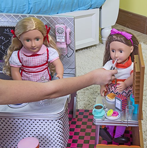 ALWAYS A CLASSIC RETRO DINER - Meet the gals after school or run it yourself, the Our Generation Bite To Eat Retro Diner is always in fashion, just like your 18 inch doll. The coolest addition to your dollhouse, this retro diner has everything you need for hours of fun.