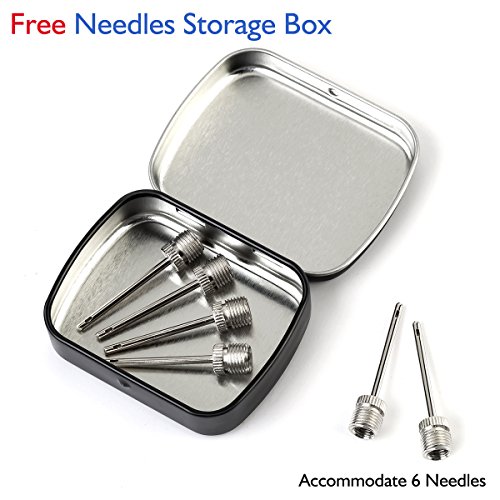 EASY TO CARRY: Comes with a little tin container needles storage box where you could put all 6 needles inside, so you don't need to worry about losing any of it. Just put the pump and container into your sport bag and go out playing.