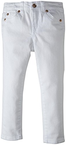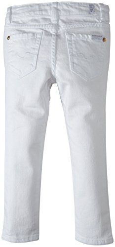 7 For All Mankind Skinny Jean (Toddler/Kid) - White Fitted from top to bottom and ankle length, The Skinny is our skinniest leg. Shiny goldtone hardware pops on this white tone-on-tone denim design for a clean, monochromatic palette. Features: Machine wash cold separately 98% Cotton, 2% Spandex