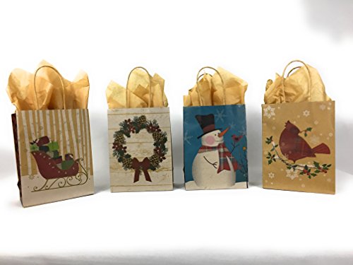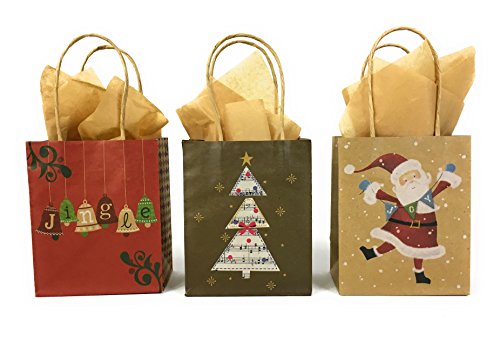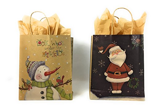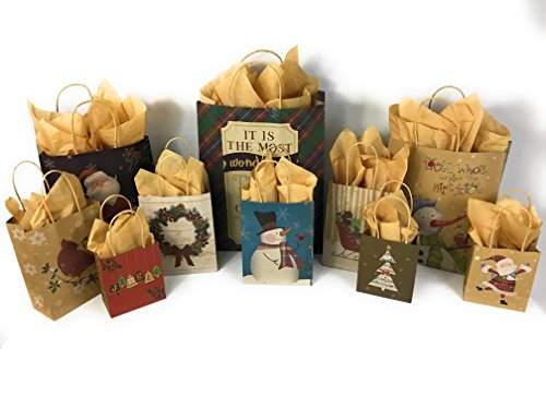 Product Description Set of 10 Kraft Bags Tissue Paper, exact designs shown. This Set Gift Bags Tissue Paper is the perfect assortment for all you gift giving needs! Great for Toys, Sweaters and more! 0