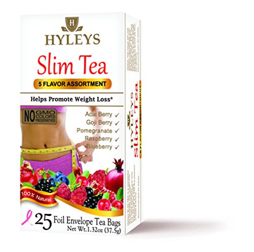 -. Feature : 100% natural product, 25 foil envelope tea bags, 1.32 oz / It uses only the highest quality ingredients. It is mild and pleasant in taste & texture. Try all 5 Flavors with this assortment pack! / Hyleys SLIM TEA 5 Flavor Assortment is a wonderful tea beverage consisting of all the 5 flavors of Hyleys Slim Tea with weight loss enhancing properties*. The 5 flavors consist of Acai Berry, Goji Berry, Raspberry, Blueberry & Pomegranate.