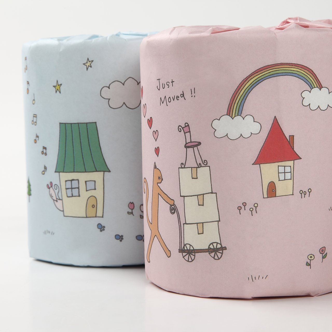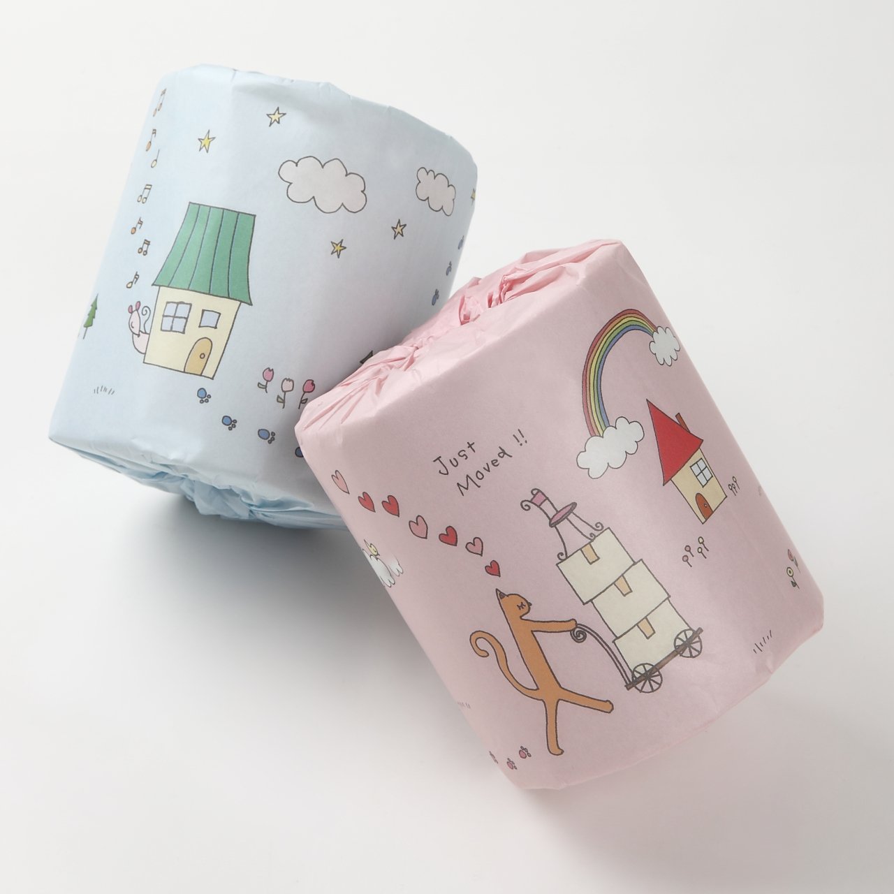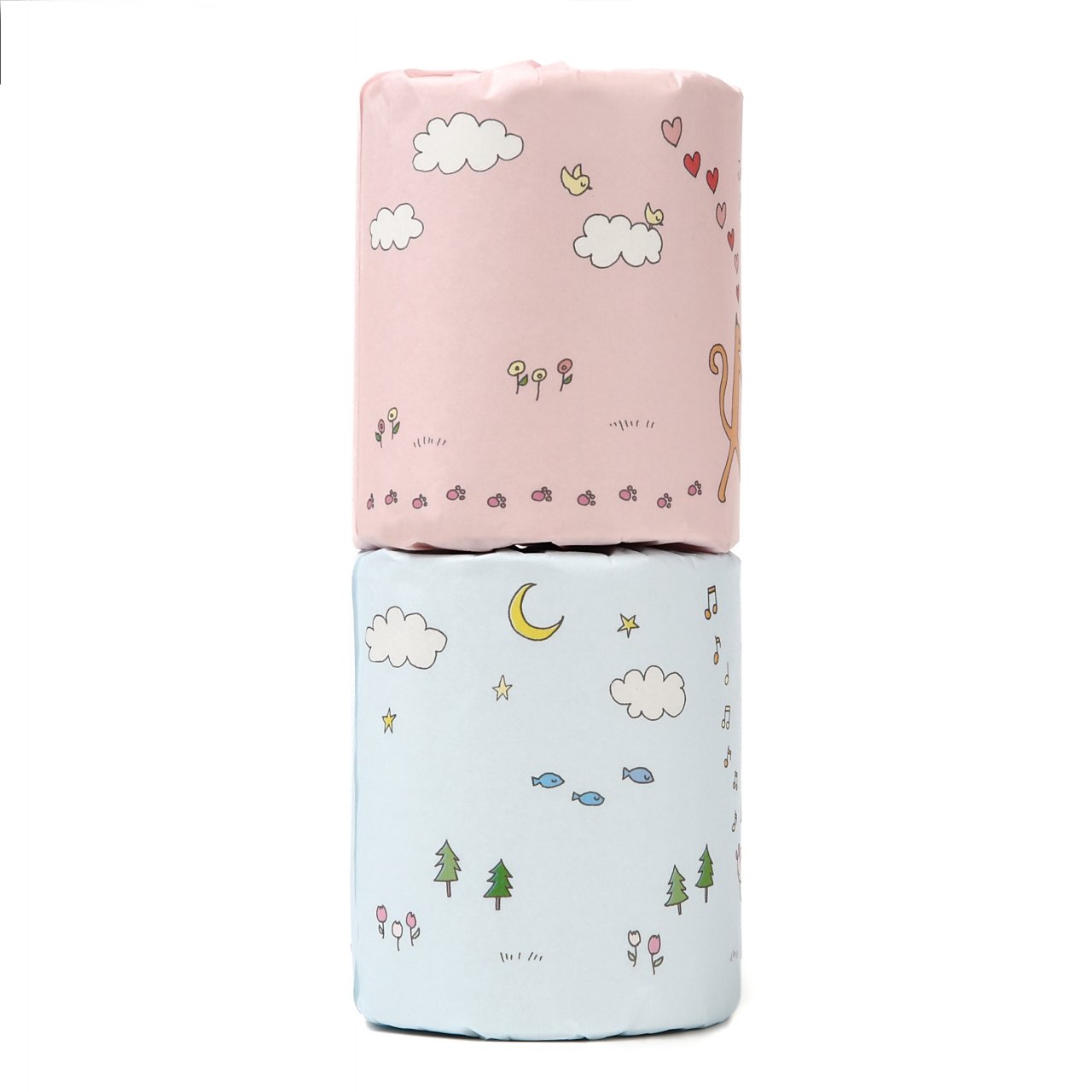 Fancy decorating toilet paper with cute illustrations wrapping paper.