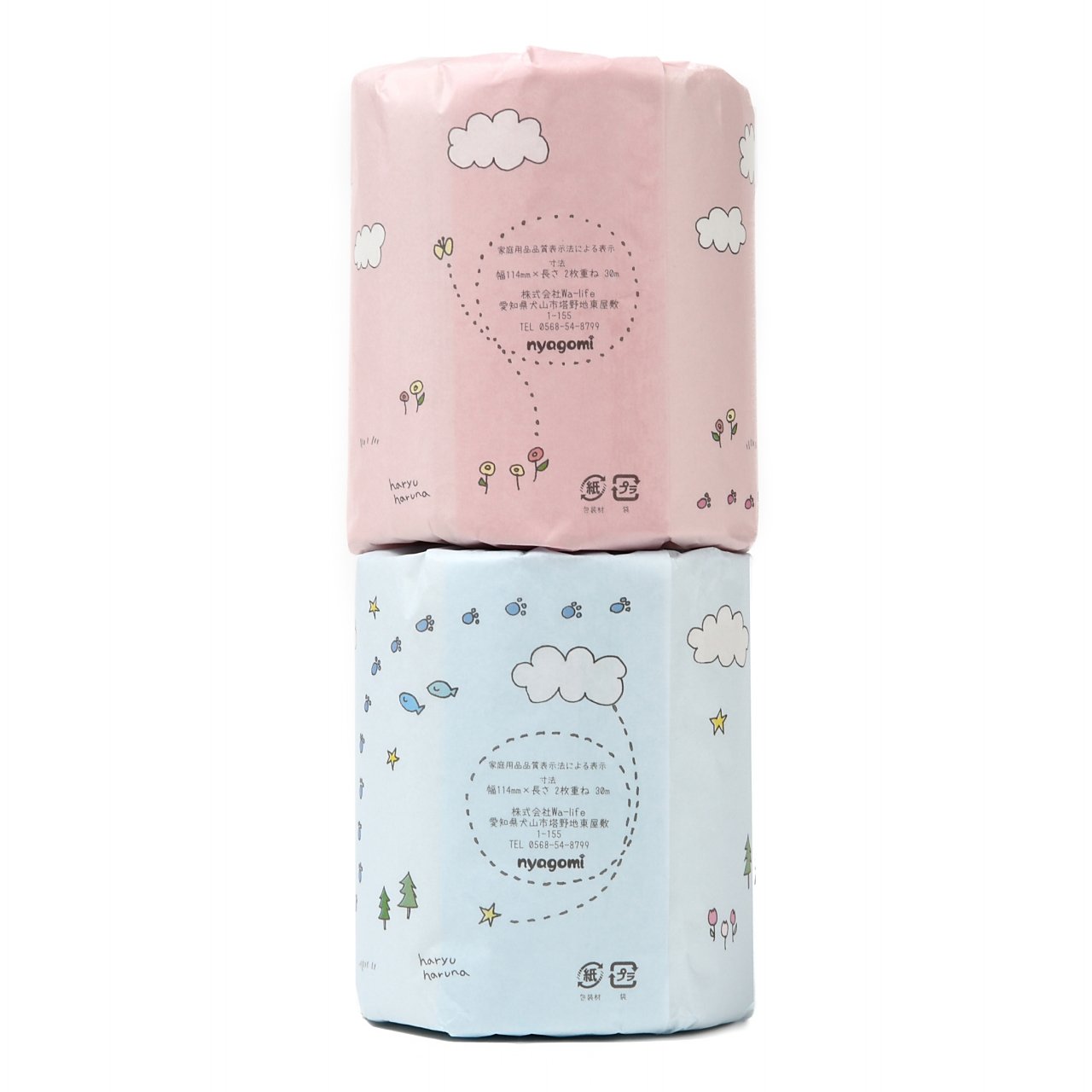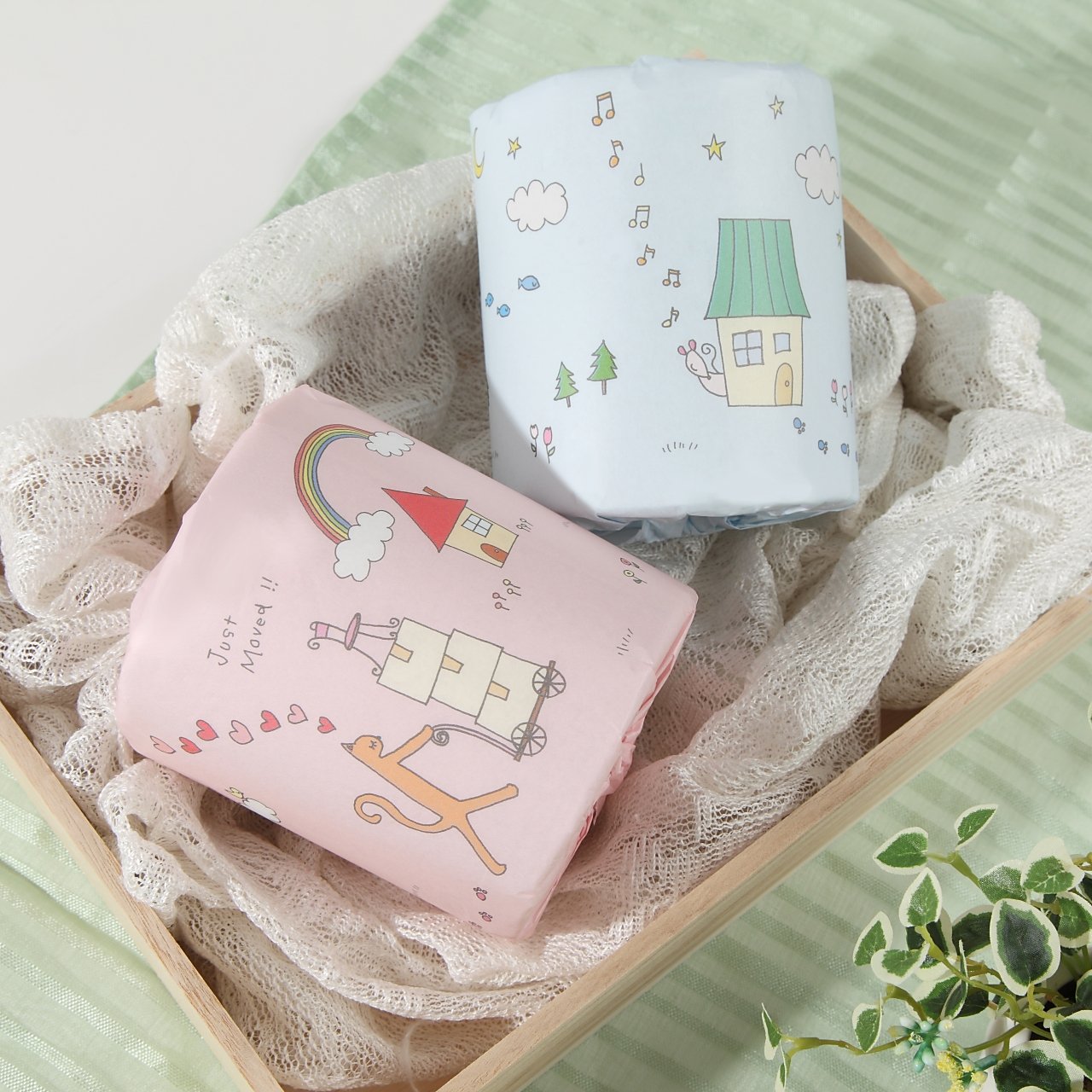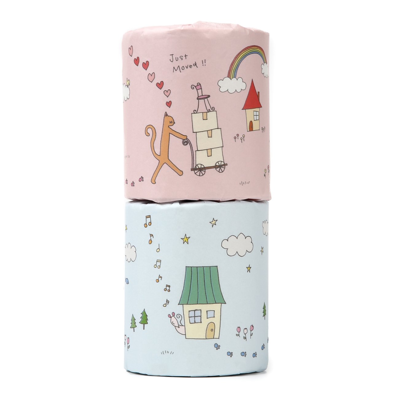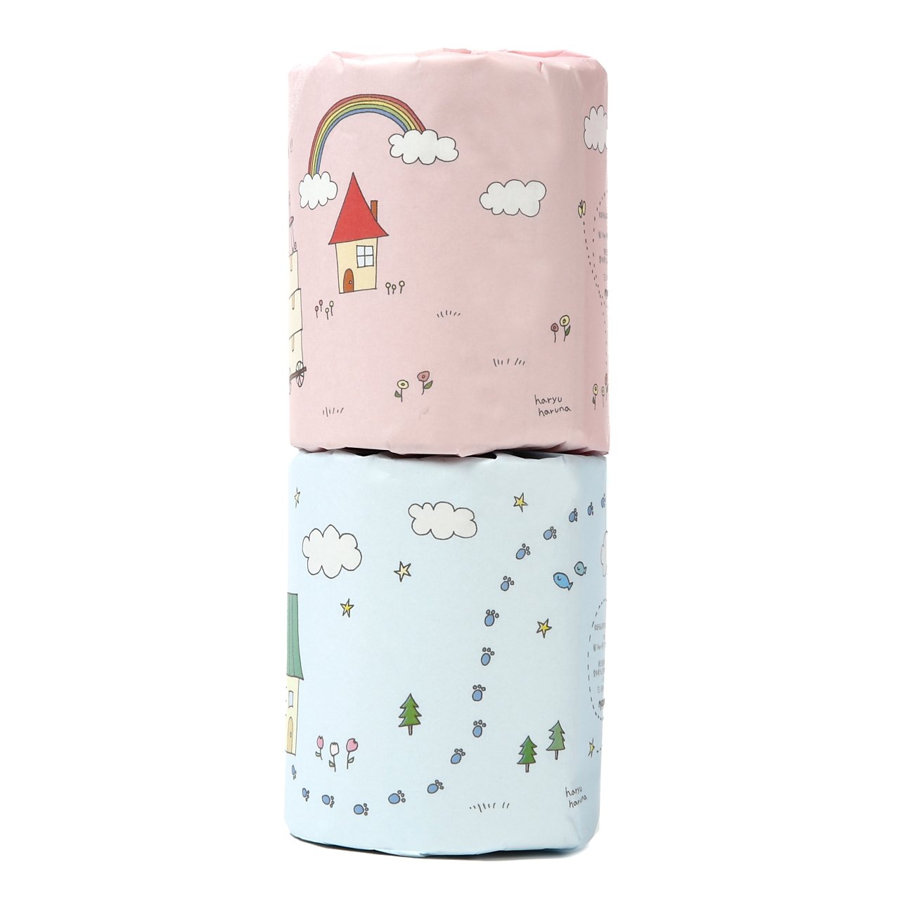 Fancy decorating toilet paper with cute illustrations wrapping paper.