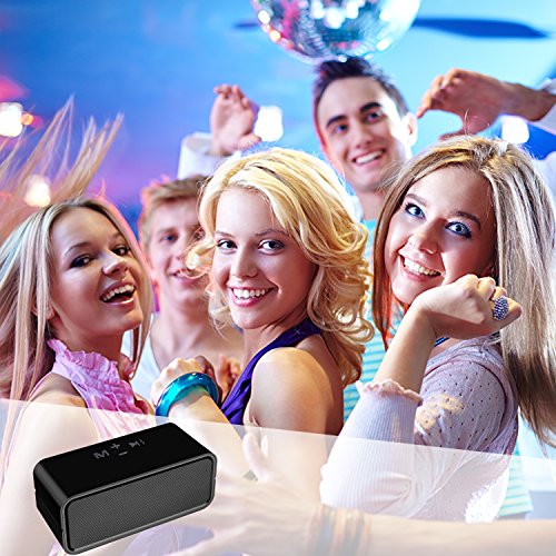 -. Feature : 【Bluetooth 4.2 Technology】: Portable Bluetooth Speaker connect over Bluetooth in seconds to: iPhone, iPad, iPod, Mac, Smartphones. Connect TVs and non-Bluetooth devices by 3.5mm audio cable to the AUX-IN jack Handsfree speaker for Smartphones and iPhones. Plays up to 85 feet from any Bluetooth-enabled device / 【Ulrta Portable】Small Bluetooth speaker use for Indoor and outdoor Such as Party,Dancing,Cooking,Beach,picnic,Sports,Riding,Camping,Climbing,Traveling,Drive,and anywhere you like to go / 【Multiple Output Mode】This wireless Bluetooth speaker supports 3.5mm AUX cable and high capacity TF card USB Drive.You can enjoy music for various connection ways. / 【LOUD & CLEAR】Built-in two 3W + 3W HD loud speakers and impressive bass,it provide more loud and clear sound to create a perfect Stereo Bass sound quality / 【WARRANTY】Our speakers portable worry-free 12-month warranty from the date you purchase this device.Any problems will be solved during this period.