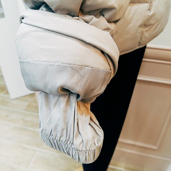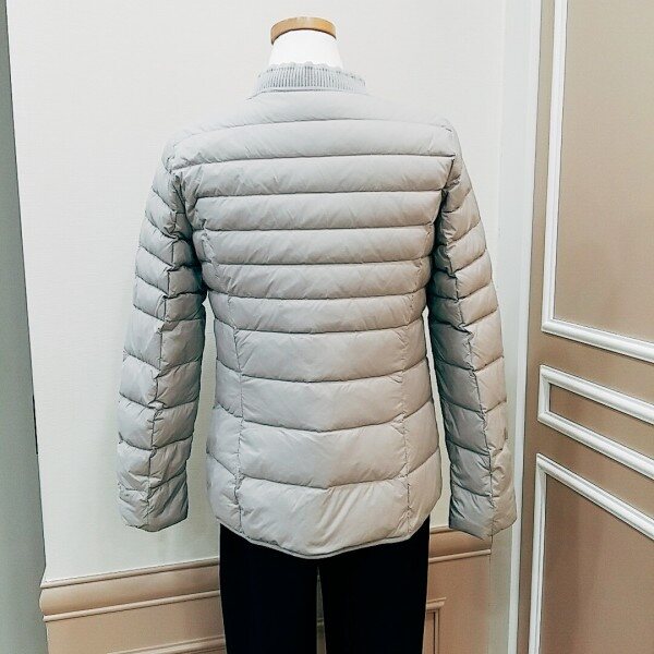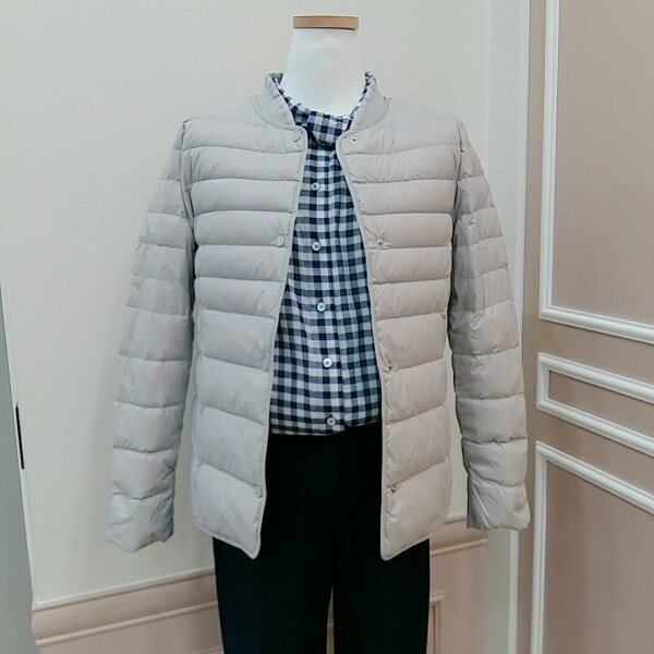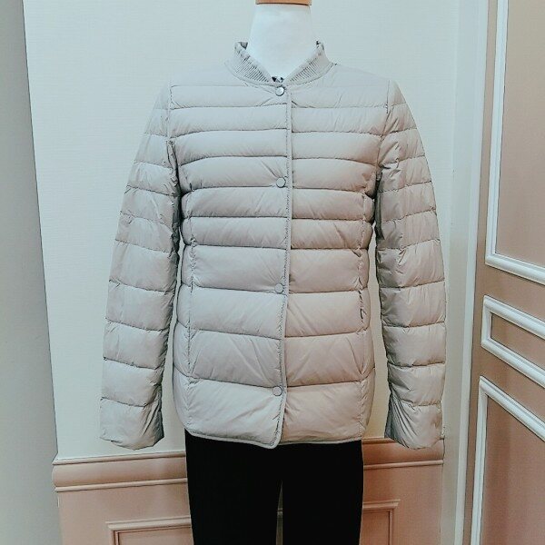 구스로 가볍고 넥라인 니트마감으로따뜻하게 연출했어요♡