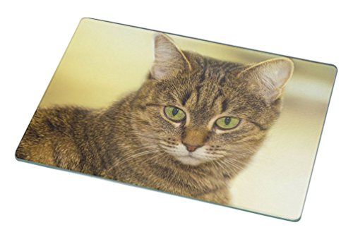 Rikki KnightTM Gorgeous Brown Cat with Green Eyes Small glass Cutting board