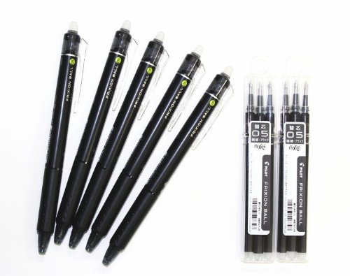 Pilot Frixion Ball Knock Retractable Erasable Gel Ink Pens,fine Point, - 0.5 Mm - Black Ink- Value set of 5 & 6 Gel Ink Pen Refill Pack