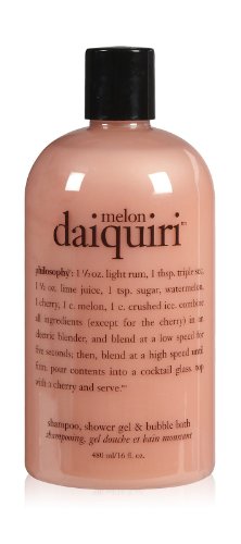 Happy hour favorite, Melon Daiquiri, is a refreshing bath treat. Our shampoo, shower gel and bubble bath cleanse and conditions skin and hair.