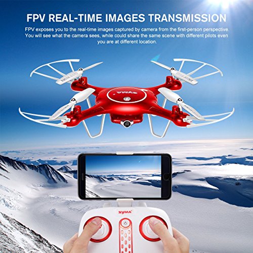 Syma x5uw WiFi FPV 720p HD카메라쿼드콥터 Drone with Flight Plan루트App콘트롤과 고도Hold함수 레드 드론