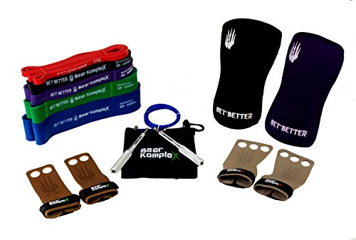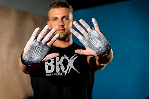 It doesn't take long to realize that ripped hands or palms drastically impact your life. From not being able to write your name with an ink pen to that blood curdling sting the first time you hop in the shower, we all know that sting... We at Bear KompleX have been down this road more times than we can count and we finally had enough. With the help of many of our friends and local boxes we have developed the best crossfit gloves to help you dominate your WOD and actually enjoy that post workout shower. From using the highest quality leather that will form to the bar shape over time, to the most comfortable wrist strap that keeps the buckle from digging into your wrist, we think we have nailed it. We currently have options available including multiple sizes, 2 colors choices, and also a 2 OR 3 hole grip selection to customize your experience. With Cross Training and daily work in your respective box, everyone is there to improve and push the ones around them. This is why you will see the Bear KompleX motto of "GET BETTER" on every pair of grips to give you that push you need. The next time you look down at your hands in the middle of "Angie" or "Fran" we want you to get some inspiration to get back up on that bar and "GET BETTER"! Click above and get a pair of gymnastics crossfit grips today!!! You won't be disappointed... Our Black grips are a bit thinner and made of a suede material while our tan and grey grips are natural leather and break in like a baseball glove. Try one or try both!!!
