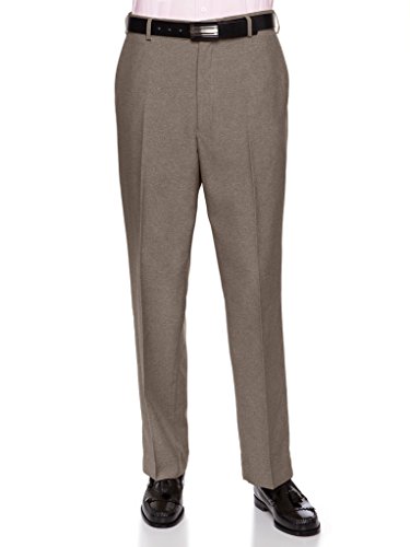 FLAT FRONT DRESS PANTS Feel confident and cool with these smart pair of dress pants. The traditional fit delivers comfort and style in and out of the office. Made of 100% polyester, these slacks are soft to the touch while providing a nice, subtle texture and year round comfort.