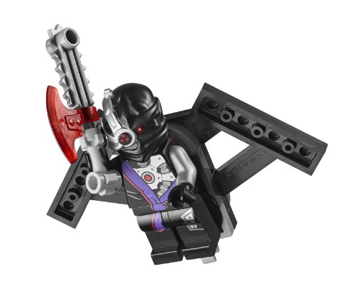 -. Feature : Nindroid MechDragon features whipping tail, poseable head and front legs, adjustable mechanical mouth and Nindroid dragon claws / Includes 2 detachable gliders, built-in carry handle, shooting cannon, rocket launcher, 2 spinning wing blades, removable prison cell, weapon store / Whip the MechDragon's tail, make the saw blades on the wings spin, fire the thumb-operated cannon, the harpoon shooter and hidden cannons on Nya's car / Nya's car features rotating harpoon flick missile, 2 laser cannons, 2 hidden flick missiles, opening cockpit, Samurai X flag and Ninja blade details / Nindroid MechDragon measures over 6" high, 20" long and 17" wide; Nya's car measures over 5" high, 6" long and 4" wide