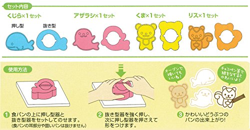• Torune Mama's Assist Animal Friends Bento Lunch Sandwich Bread Cutters and Stamps Set of 4 Animals (Bear Squall Whale Seal) Japan Import