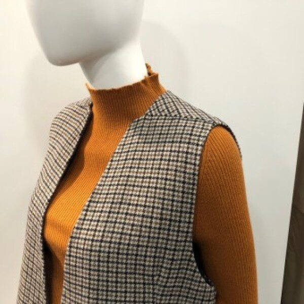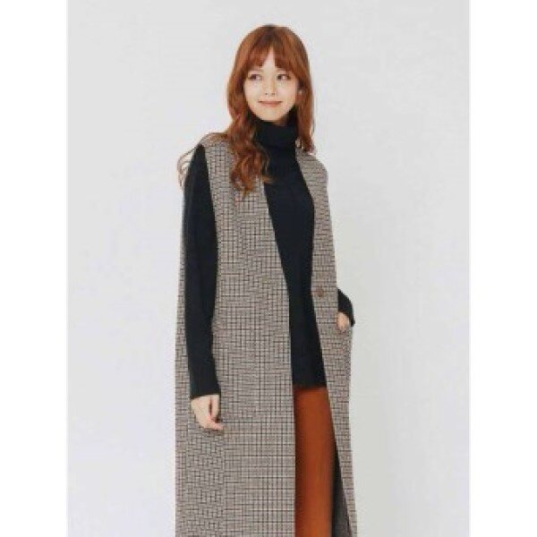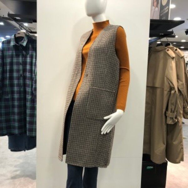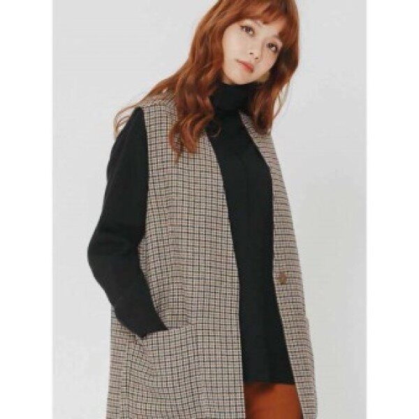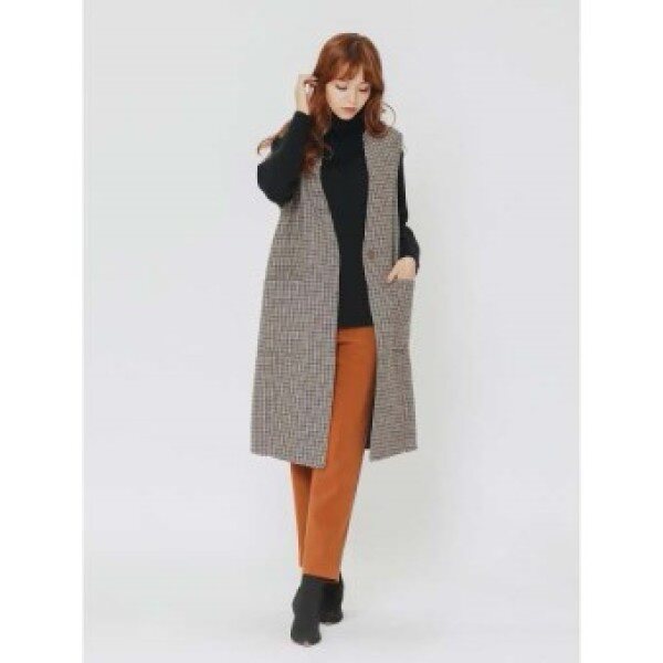 세련된 체크 디자인의 롱 체크 조끼입니다 힙을덥는 기장으로 체형에 부담없이 누구든지 여리하게 코디할수 있어요