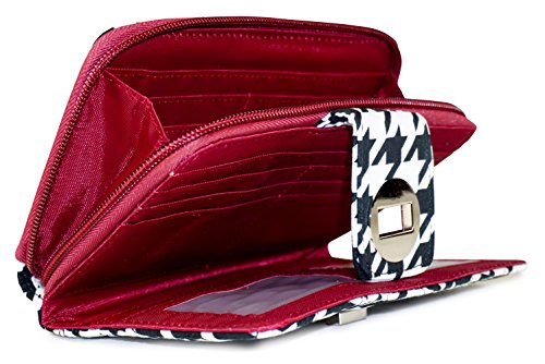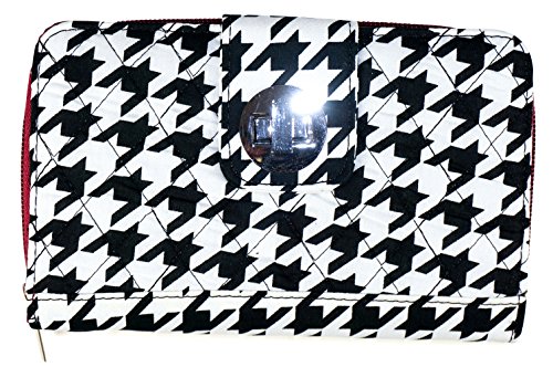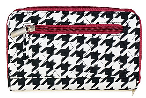 Turn Lock Quilted Double Zip Around Wallet, Houndstooth (Red)