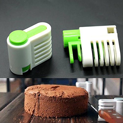 IDS Adjustable Cake Slicer, DIY Cake Layer Slicer Cutter, Stratification Auxiliary, Bread Slice, Toast Cut, 5 Cake Layers Leveler Slicer, Green, 2 Pcs