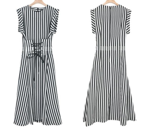 商品詳細カジュアル ストライプ レースアップ ノースリーブ コルセットワンピースサイズ展開は:FREEになります。 採寸は下記通りです、ご参考ください。 ※実寸を記載しておりますので、お手持ちのお洋服と 比較いただけると、サイズ選びの目安になります。※着丈の参考に ⇒ 身長別着丈ガイド! 【サイズ(cm)】 着丈:111.0cm 肩幅:33.0cm 胸囲:86.0cm 袖丈:3.5cm ウエスト:89.0cm 【カラー】 ブラック 【素材】 ポリ65%/レーヨン35%