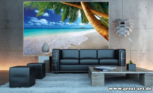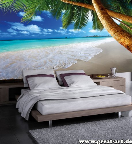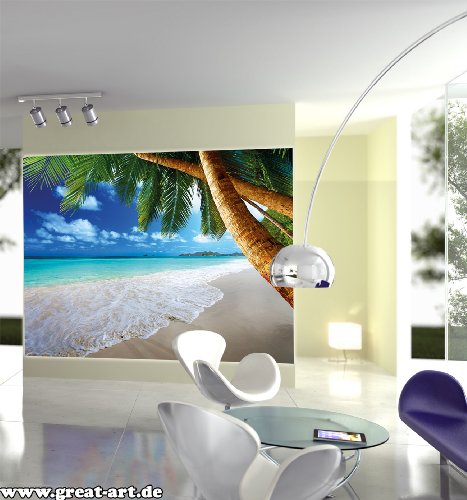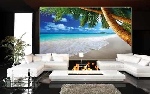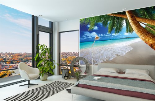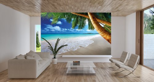 - Title : Sandy Beach with Palm Trees and the Sea Photo Wallpaper - Paradise Beach and Palm Trees Mural - Xxl Beach Wall Decoration