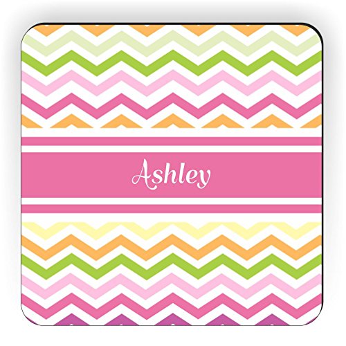 Rikki Knight "Ashley" Pink Chevron Name Design Square Fridge Magnet