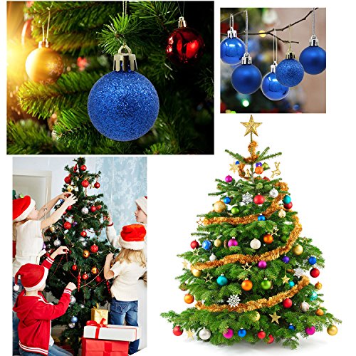 OCR24PCS 40MM Christmas Ball Ornaments Shatterproof Christmas Tree SMALL Decorative Balls for Holiday Wedding Party Decoration Centerpieces Hooks (Blue)