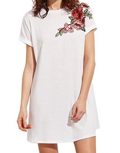Short sleeve, round neck, Embroider flower, loose bottom.
