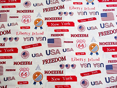 New York America USA Freedom Land USA Flag on White Fabric 36 by 36-Inch Wide (1 Yard) (CT621)