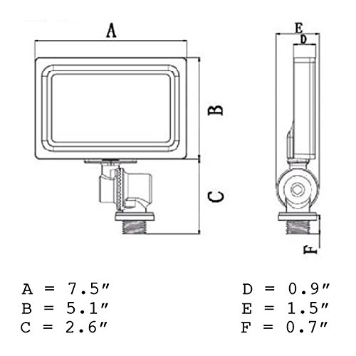 LEDwholesalers Series-5 Ultra-Slim 25W LED Outdoor Security Flood Light Fixture with 1/2" Threaded Knuckle Mount, UL-Listed, Daylight 5000K, 3778WH