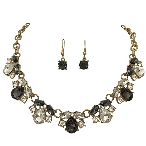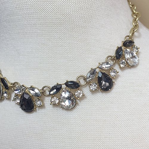 Fancy Rhinestone Bling Matte Gold Tone Boutique Bib Bubble Necklace Earrings Set Boho (Clear & Black)