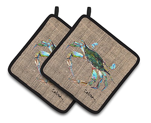 Caroline's Treasures Crab Pair of Pot Holders 8731PTHD, 7.5HX7.5W, Multicolor
