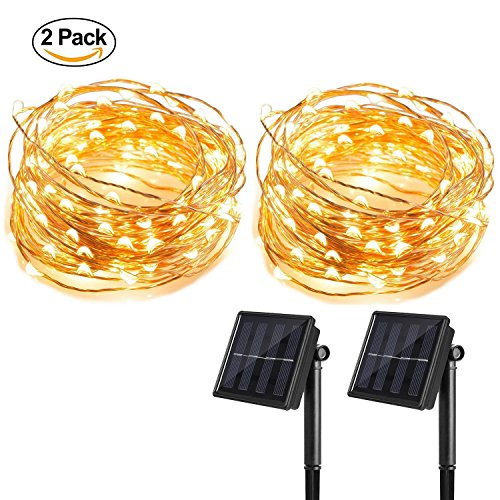 2 Pack T HomeLight Solar Power String Light 33FT 100Leds Warm White ON/OFF Flash 2 Mode Copper Decor Led Light, Patio, Yard, Travel, Motor Home DIY Picture Wall