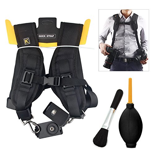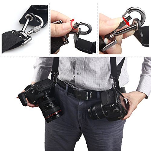 ALLOWS CARRY 2 CAMERAS AND RAPIDLY SWITCH BETWEEN THEM: Allows you to carry 2 Cameras at the same time and switch between them rapidly. Quick Release Dual Shoulder Camera Strap harness also can be SEPARTED into 2 single straps