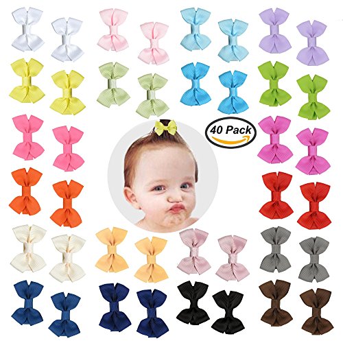 40PCS Prohouse Different Colors Boutique Hair Bows Girls Kids Alligator Clip Grosgrain Ribbon Hair Clips 0 |