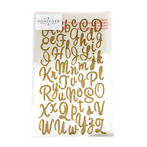 Homeford Glitter Cursive Aplhabet Letters Stickers, 1-Inch, 50-count (Gold)