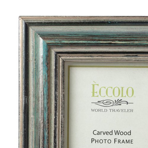 Eccolo Fashion Antiqued Carved Wood Frame, Acqua, 4 by 6-Inch