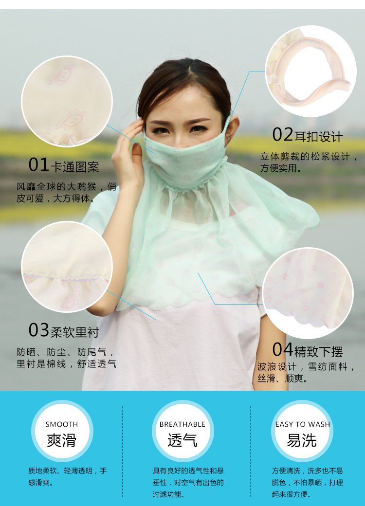 Product Specifications: mask part 12cm * 20cm, Neck cord folded 22cm, Neck hem length 25cm,