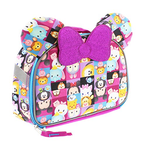 Make every day an adventure with this Tsum Tsum backpack and lunch box set! It can easily carry books, gym clothes, pencils, and more! This Disney day pack contains a roomy main compartment, and a front zip compartment. This set features colorful graphics of your favorite Disney Tsum Tsum characters: Pluto, Minnie Mouse, Mickey Mouse, Goofy, Tigger, Marie, Daisy Duck, Stitch, and more! The book bag can be hung up when not in use by the webbed locker loop. The matching lunch box makes lunchtime fun and exciting with an insulated interior, zipper closure, and a holding strap for easy carrying. This set features 3D bows and ears for added style! It's the perfect back to school choice for any Tsum Tsum fan!Feature