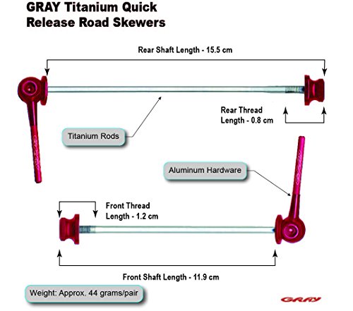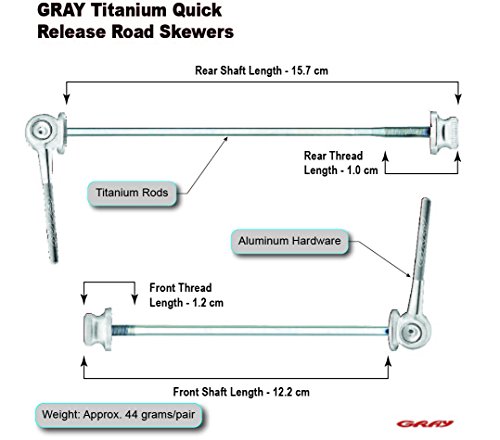 Studio : Gray Publisher : Gray Binding : Misc. Product Description The GRAY titanium skewers with carbon fiber quick release levers are a combination of titanium and 3k carbon. Both of these elements form the quick release. Our Skewers features titanium with carbon quick release for quick wheel release. F/112 R/143 CP for Racing. 0