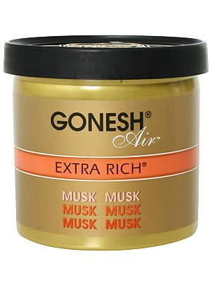 "GONESH gel air freshener extra rich musk" is an aromatic fragrance using a solid fragrance called fragrance gel.