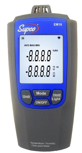 Supco EM10 Temperature and Humidity Meter with LCD Display, 14 to 122 Degrees F