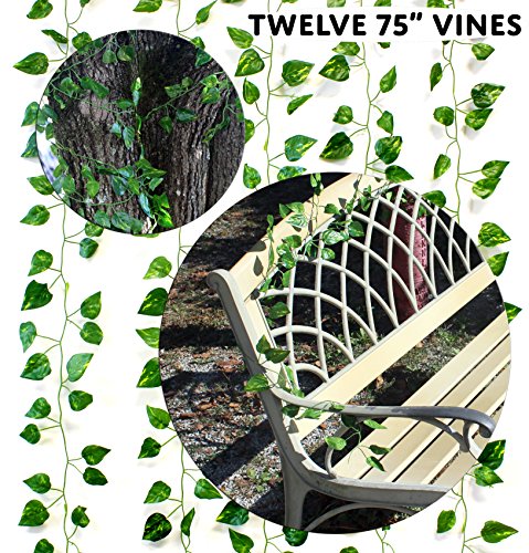 Artificial Vines 75 Feet Total (Value 12-Pack); Simulated Climbing Ivy Plants for Garland or Greenery at Party, Patio or Yard 75 Feet