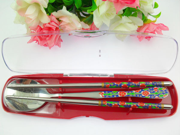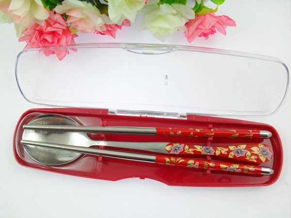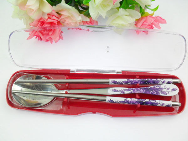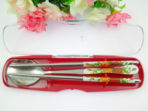 South Korea hot ~ portable boxed cutlery spent half round chopsticks spoon set veryhealth and practical Oh