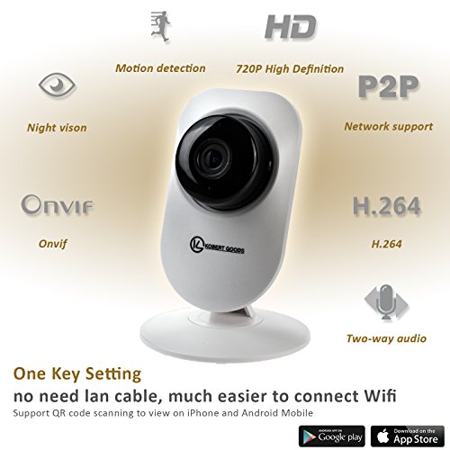 Kobert Goods KOBERT GOODS drahtlose IP-Indoor-Uberwachungskamera KG26 HD-Netzwerk-IP-Kamera mit IR-Nachsicht, P2P Zwei-Wege-Audio Mikrofon Digital-Zoom Bewegungserkennung WiFi Wlan und ONVIF- k