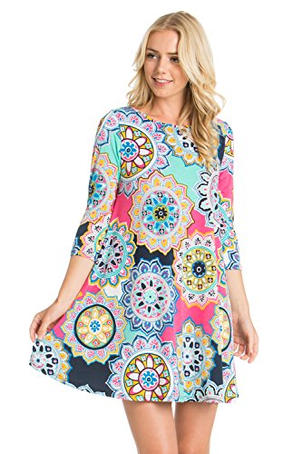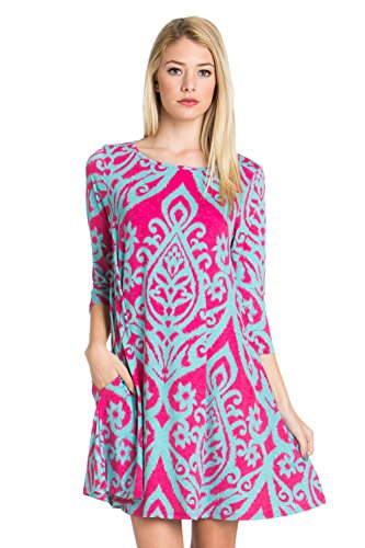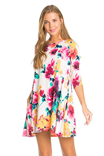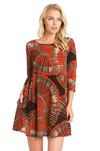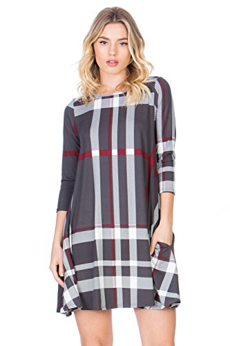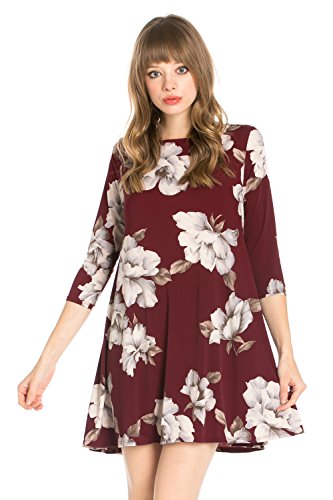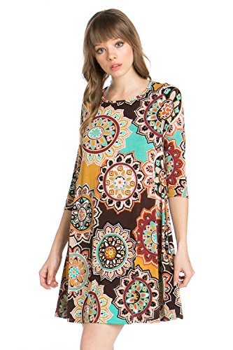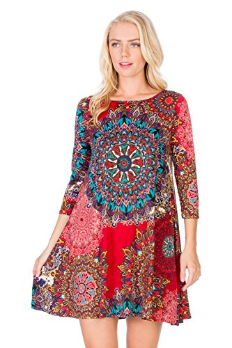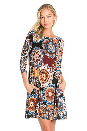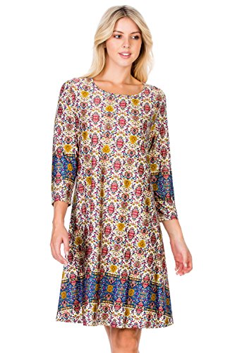 A-line midi dress features a scoop neckline and 3/4 length or full length sleeves.