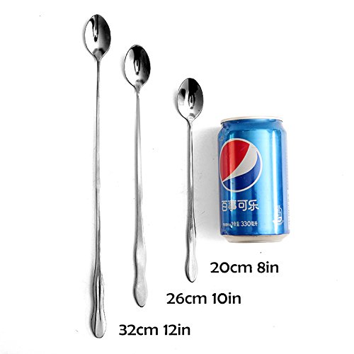 HornTide 6-Piece Mixing Spoon Set 8-Inch 10-Inch 12-Inch Long Handle Spoons for Ice Cream Cold Drink Fruit Juice Cocktail Stirring and More - Stainless Steel Mirror Polishing