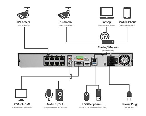 -. Feature : Start recording right away with your pre-installed (2x) 2TB hard drives, 4TB Total. The NVR comes with TWO hard drive slots and can hold up to 6TB of space for maximum recording length / IP66 weatherproof cameras can brave the elements and are fully functional in a temperature range from -22°F - 140°F, giving you indoor/outdoor versatility. / The system's easy "Plug & Play" design simplifies your installation process. Sixteen built-in PoE ports allow you to run just ONE cable per camera for both power and data! / Security is a round-the-clock P.R.Iority - see up to 100 feet in the dark with our powerful IR night vision-equipped cameras and even customize areas for motion-triggered recording and email alerts base on your schedule. / Download our FREE app LaView Net for quality remote viewing on your iOS, android, Mac, or PC. Setup is quick and effortless - simply use the app to scan the barcode on your NVR!