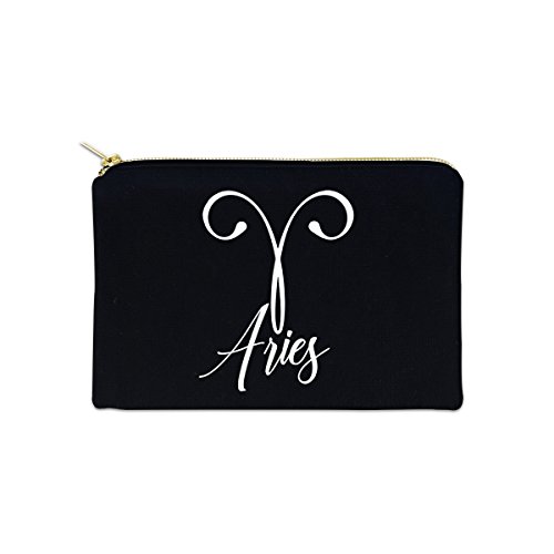 Aries Zodiac Sign 12 oz Cosmetic Makeup Cotton Canvas Bag - (Black Canvas)