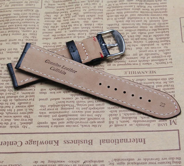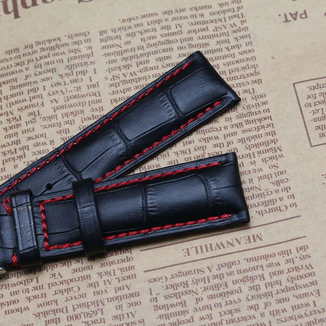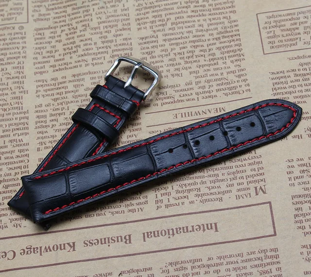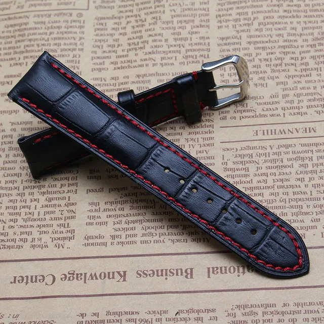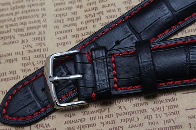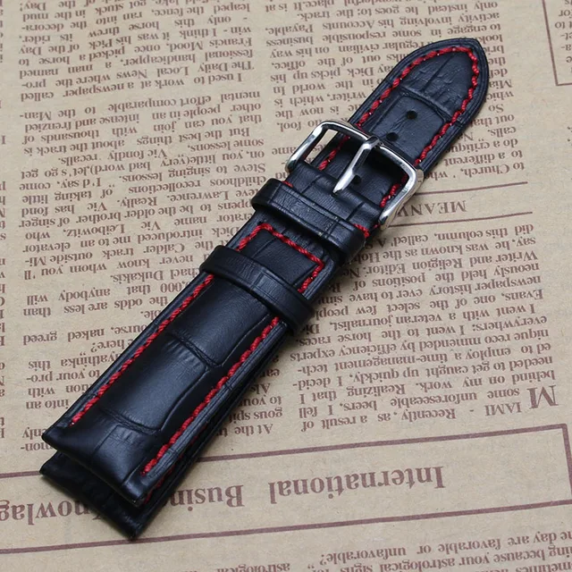 상품 내용 20 미리메터 22 미리메터 망 시계 밴드 시계 스트랩 팔찌 블랙 가죽 레드 스티치 안감 실버 스테인레스 스틸 핀 버클 버클