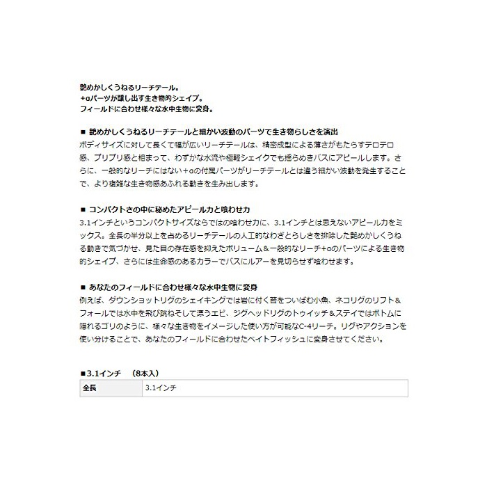 ●사이즈:3.1인치●입수:8개●FECO:JBNBC토너먼트 대응