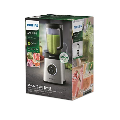 Philips hr3653/00Mixer Schussel aus Tritan extrem bestandig, 2,2l, Pro Blend 63D, Programm fur Smoothies, 1400W, 35000U/min, Edelstahl