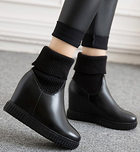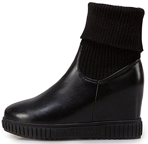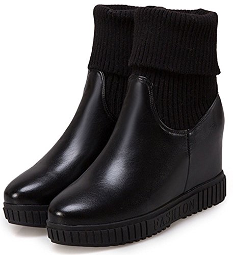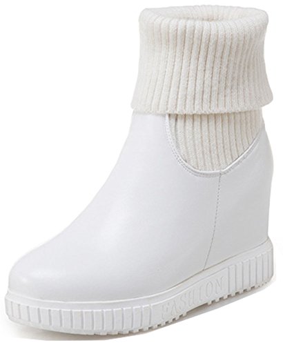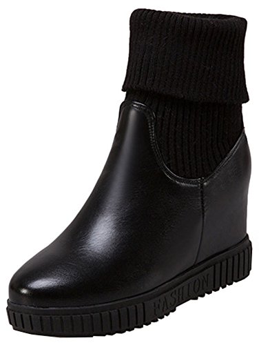 (IDIFU)/Women's/Boots/DIRECT FROM USA/IDIFU Women's Sweet High Wedge Heels Inside Round Toe Pull On Mid Calf Martin Booties